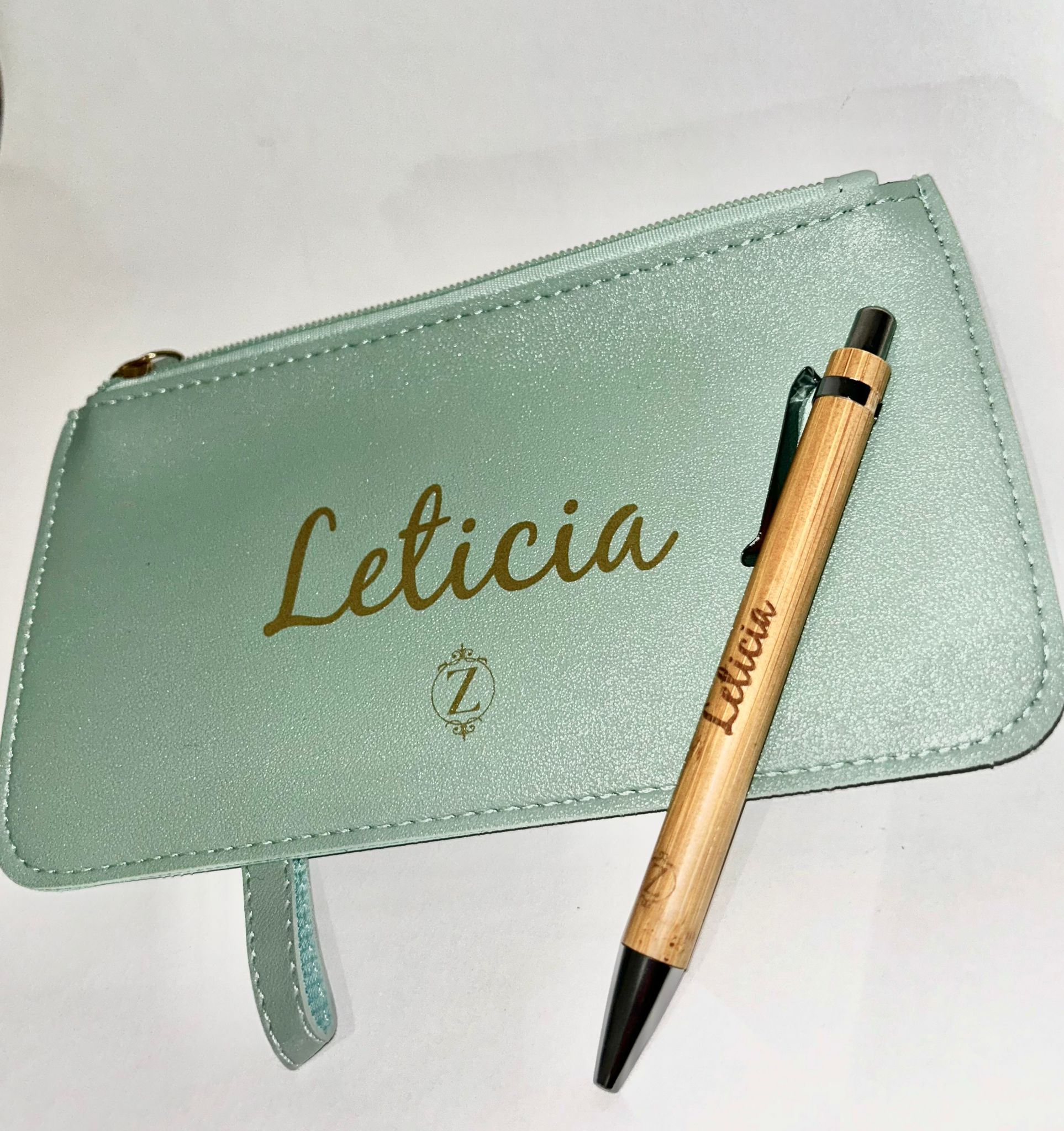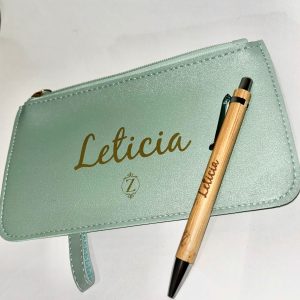 Pequeño neceser piel sintetica. Color verde agua. Personalízalo con tu nombre.