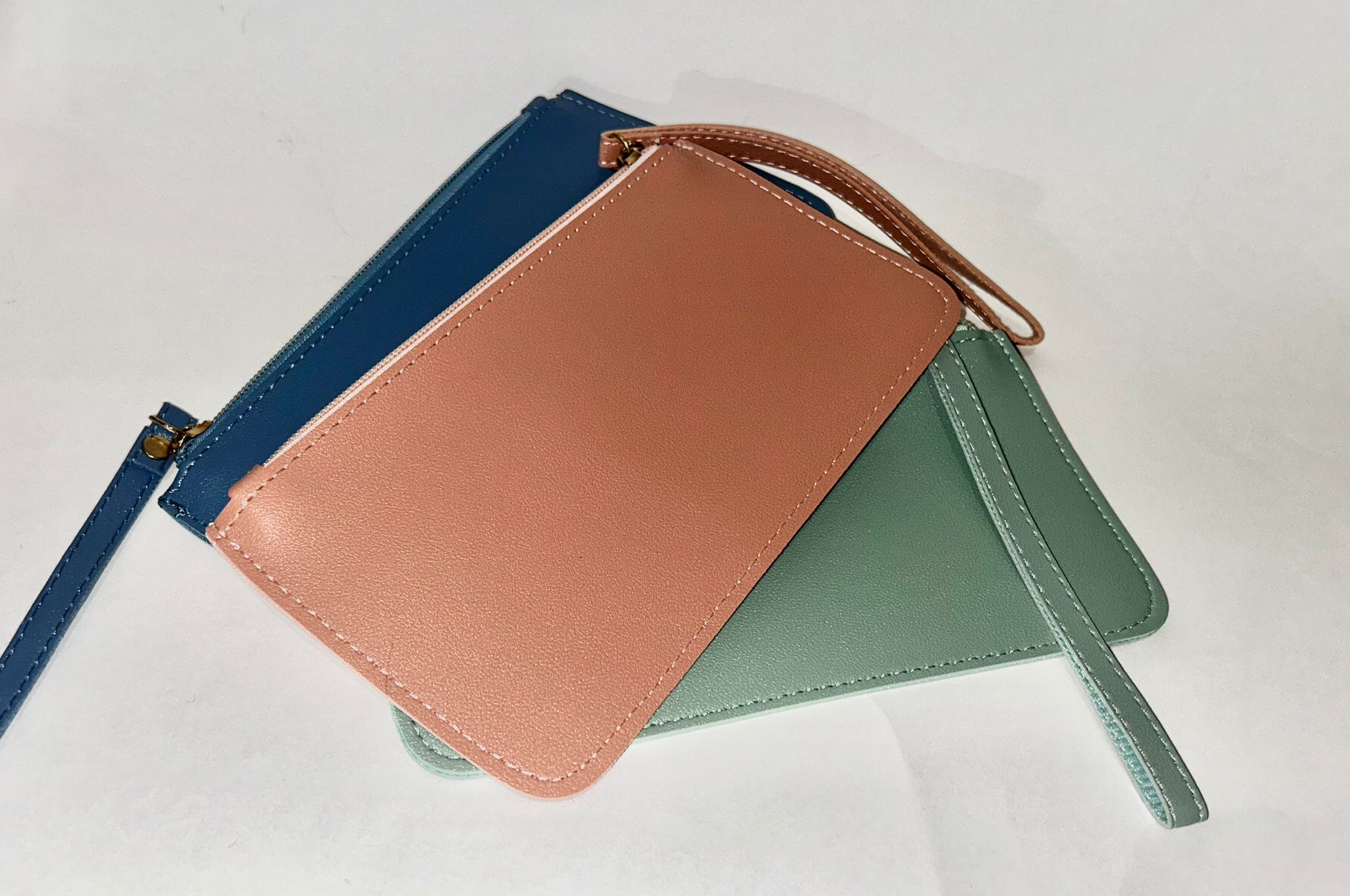 Pequeño neceser personalizado con tu nombre. Piel sintética. Color rosa claro.